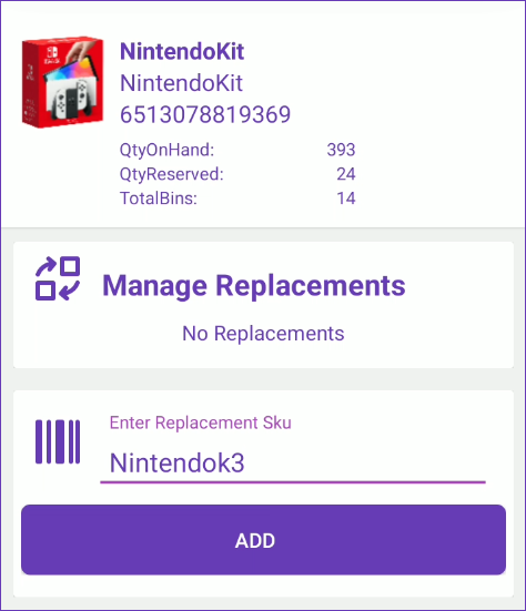 - If the setting to Force Product Scan is enabled in Skustack, you will need to scan the item to open the pick dialog. To scan the replacement SKU instead of the original item, tap the Scan Replacement button at the top of the picklist before scanning the barcode.