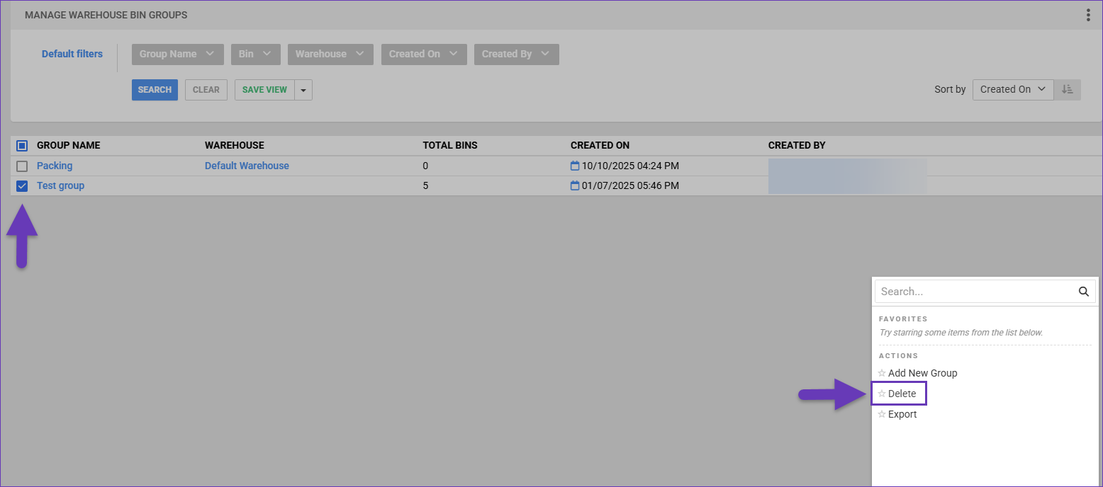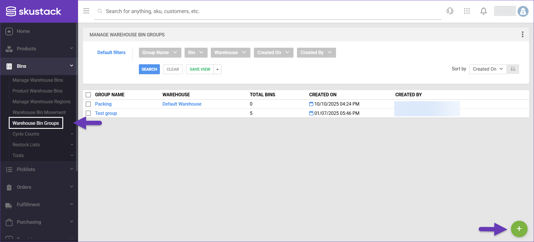 1. Navigate to Bins > Warehouse Bin Groups.