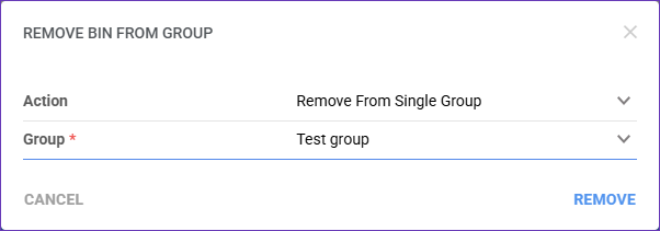 4. Choose, from which Group to exclude the bin, and click Remove.