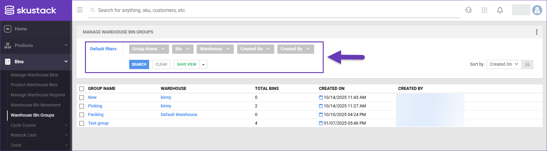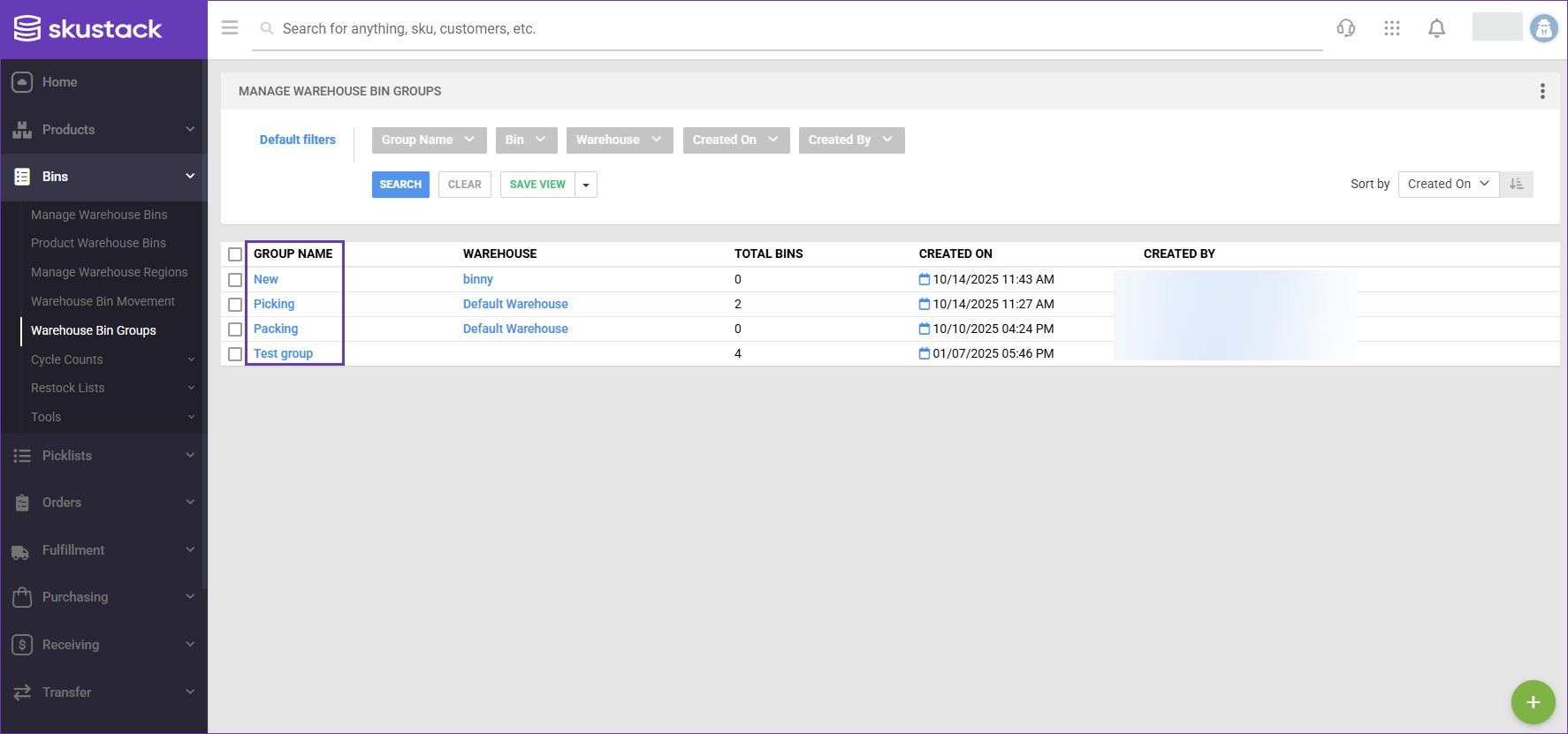 Skustack allows you to organize multiple storage bins into Warehouse Bin Groups with a similar purpose. Bin Groups serve as effective filters for inventory searches, cycle counts, and picking operations. They are especially beneficial for 3PL operations, enabling the direct categorization and filtering of stock locations by client groups.